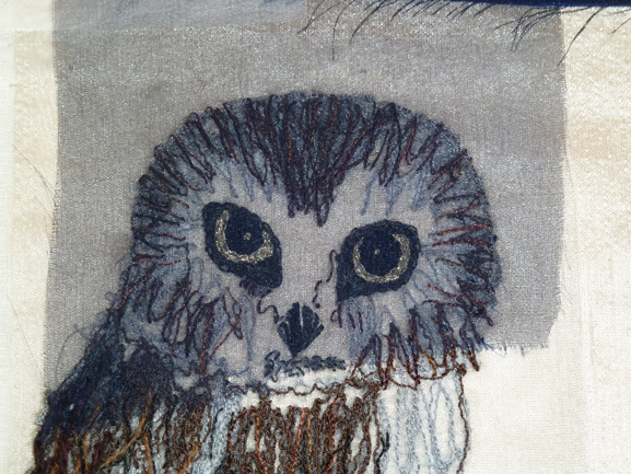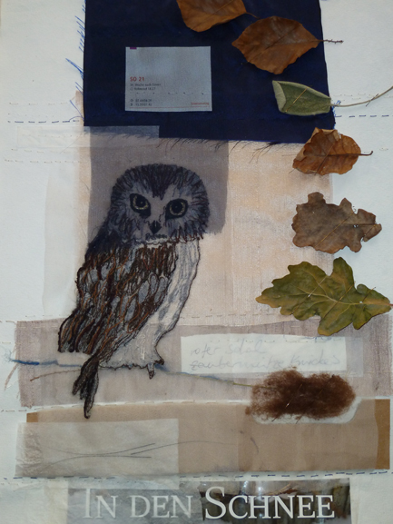 Detail aus "Die Verwandlung des Zauberers" (2009) - Collage mit Freier Stickerei aus Papier und Seide, 30 x 42 cm