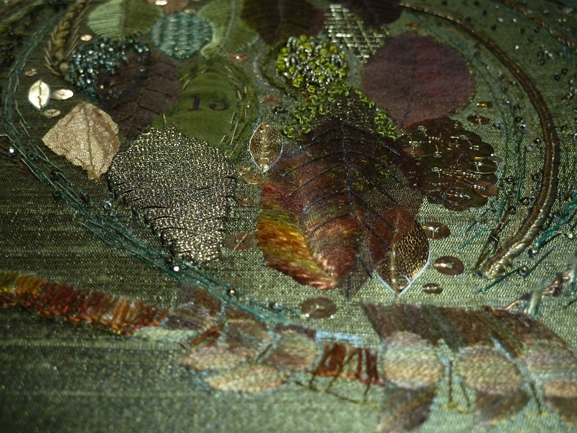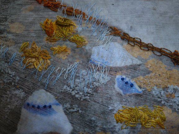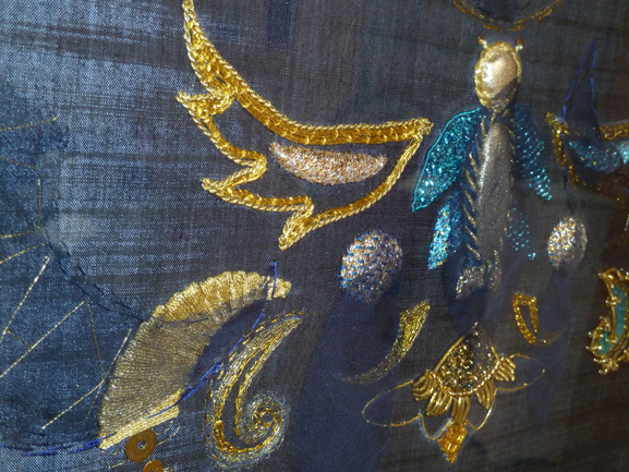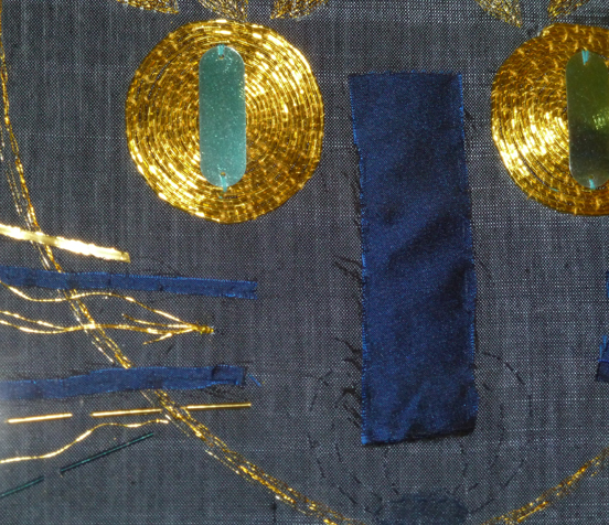 Detail aus "Mein Goldklümpchen" (2010) - Freie Stickerei auf Seide, 58 x 30 cm