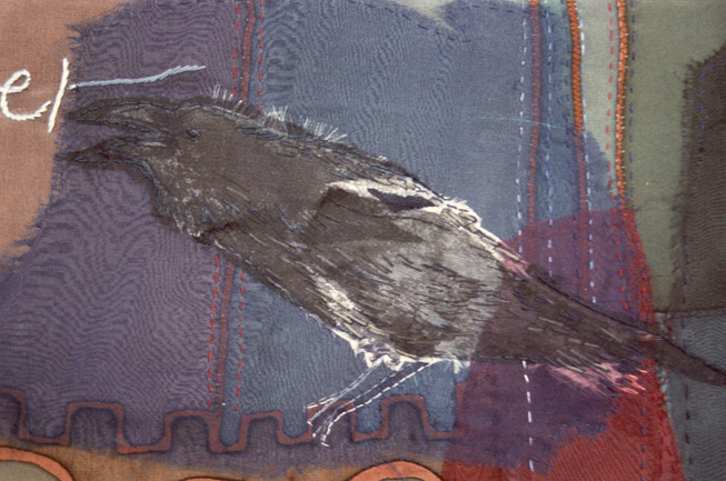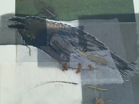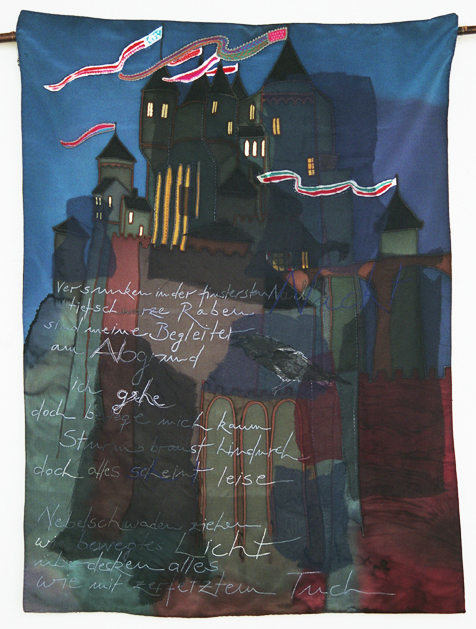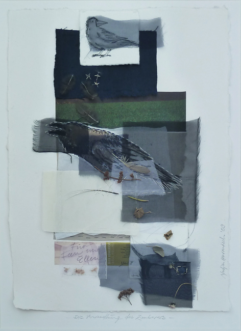 Collage mit Freier Stickerei aus Papier und Seide, 30 x 42 cm